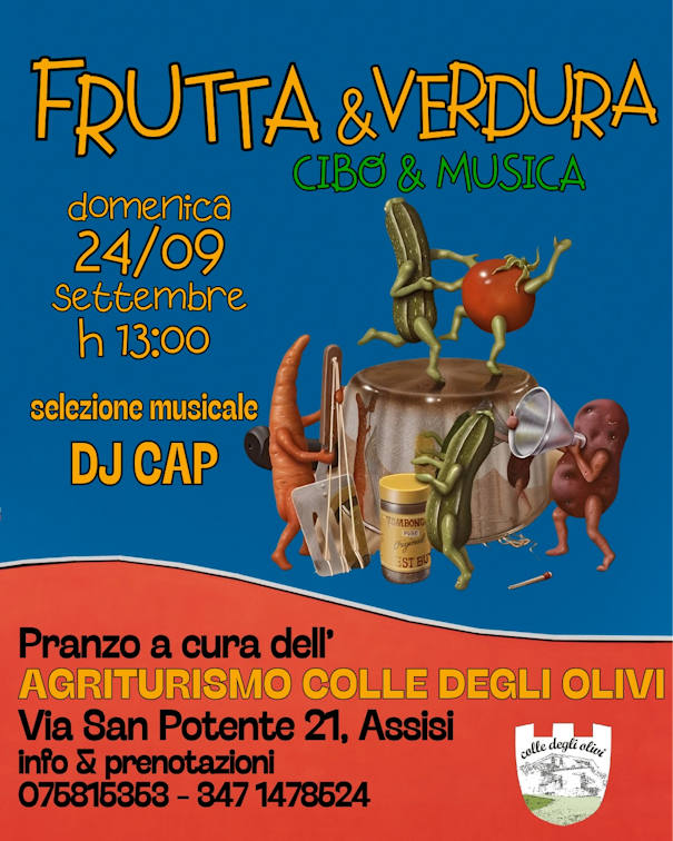 Domenica 24 Settembre alle ore 13:00 vi aspettiamo numerosi al Ristorantino dell’Agriturismo Colle degli Olivi di Assisi insieme a DJ CAP.